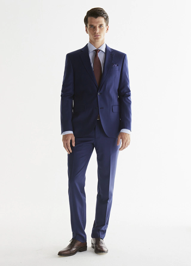 Ambo de lana premium Super 140 azul marino. De moldería Regular es un clásico atemporal perfecto para verte elegante y actual. Está confeccionado para brindar comodidad. La lana es suave al tacto y al ser pura mantiene un buen envejecimiento. Usalo con camisa, corbata y accesorios negros para un evento formal de noche, o para el dia a dia combinado con accesorios marrones.
