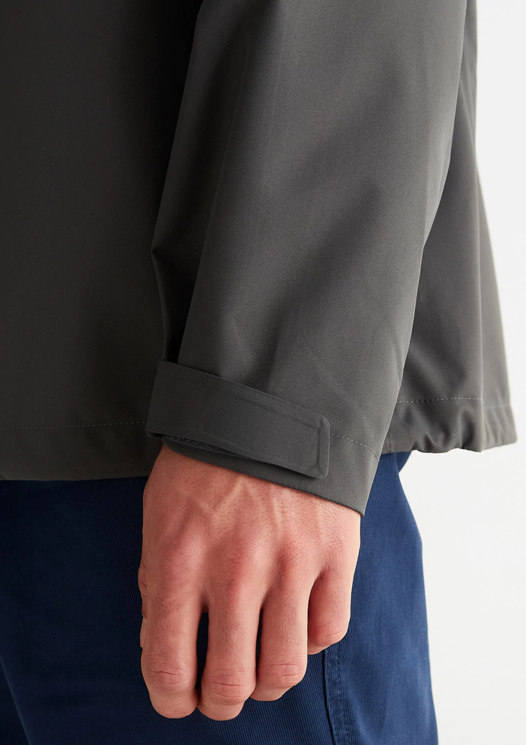 Su capucha funcional, bolsillos prácticos y cierres en las mangas completan una prenda pensada para acompañarte en movimiento.