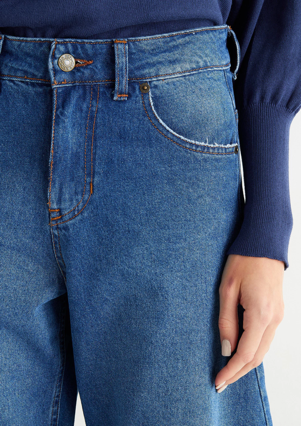 Estos jeans azul de algodón están hechos de un denim súper suave y liviano. Son un imprescindible en tu armario. Realizados con costuras a tono, logran darle a tu look la modernidad y sobriedad que buscas.