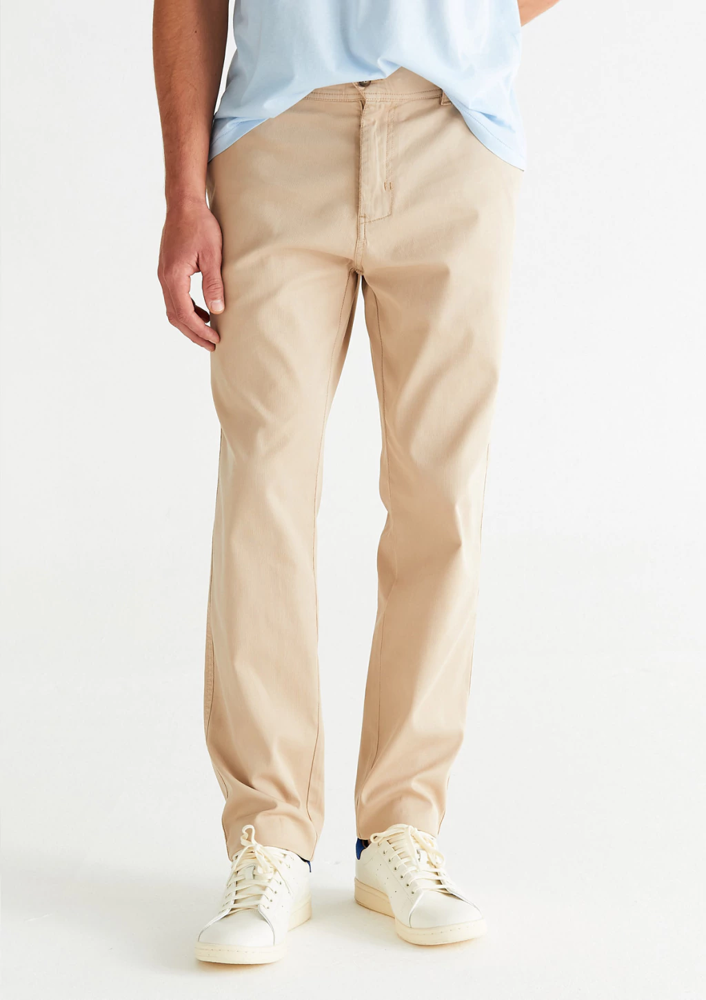 Este pantalón khaki de gabardina de algodón es un pantalón moderno que no puede faltar en tu armario. Un básico con diseño atemporal que podrás usar todo el año, tanto en la oficina como para cualquier evento en el que quieras verte fresco y elegante. Su tejido contiene un leve porcentaje de elastano que te brindará confort durante todo el día.