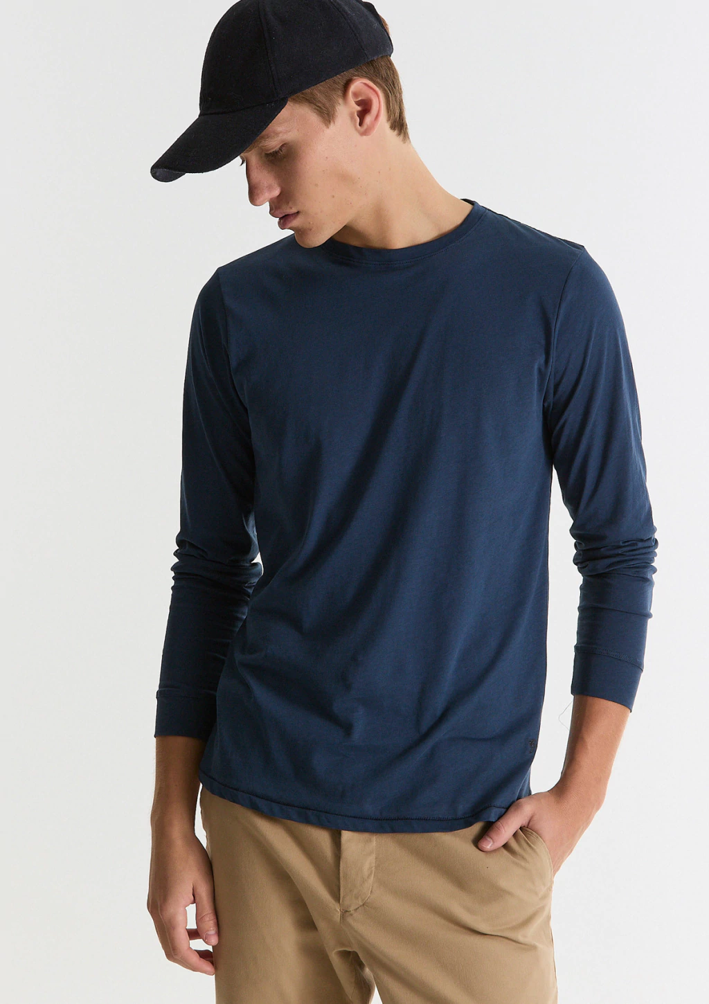 La remera básica indispensable en tu vestidor. De manga larga y escote redondo es comoda para usar debajo de todos tus looks este invierno. Su tejido de algodon pima 100% liviano y cálido. Es un básico que no puede faltarte.