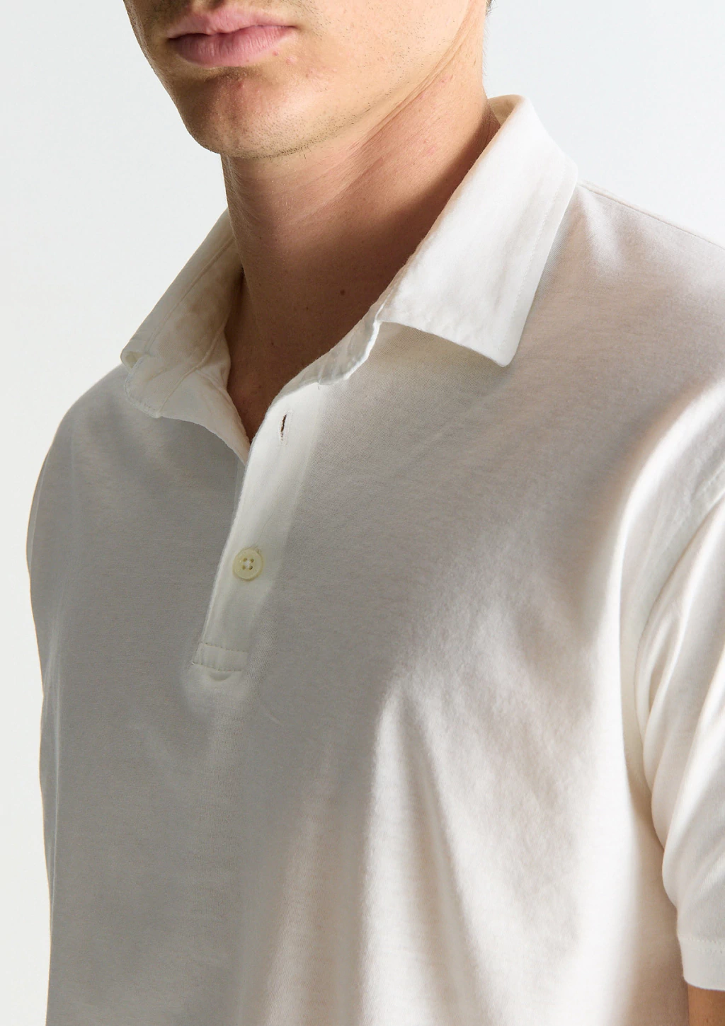 La excelencia de los materiales enaltece el estilo versátil del polo en algodón. La prenda se caracteriza por la textura del tejido y los perfiles acanalados. El corte ofrece volúmenes regulares.