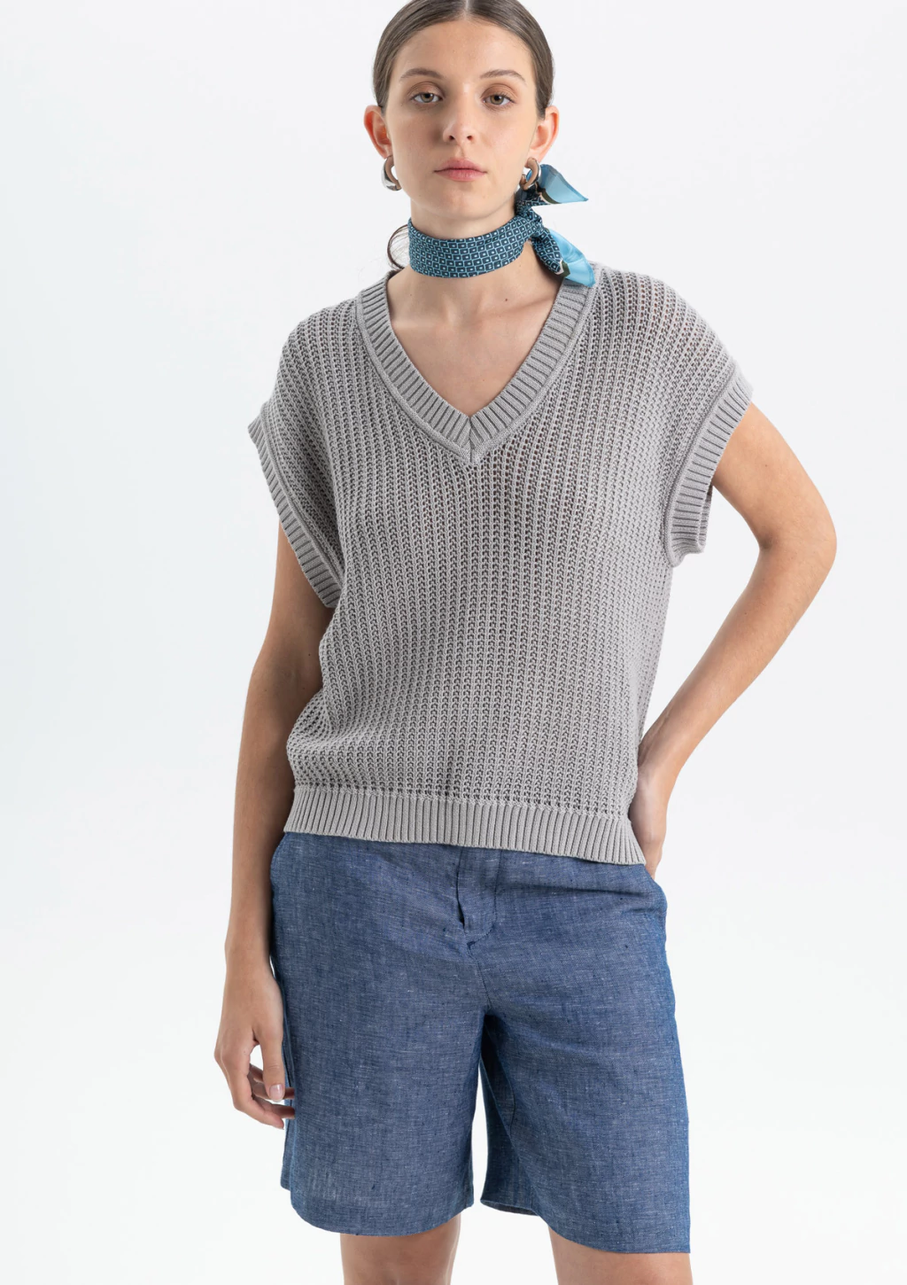 Un básico para los fines de semana relajados que cuenta con cuello redondo, hombros caídos y una construcción acanalada para mantener el calor. Una prenda que no te puede faltar esta temporada e ideal para los días de verano.